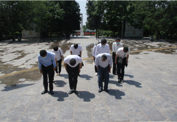 全体人员面向焦裕禄烈士墓深深三鞠躬